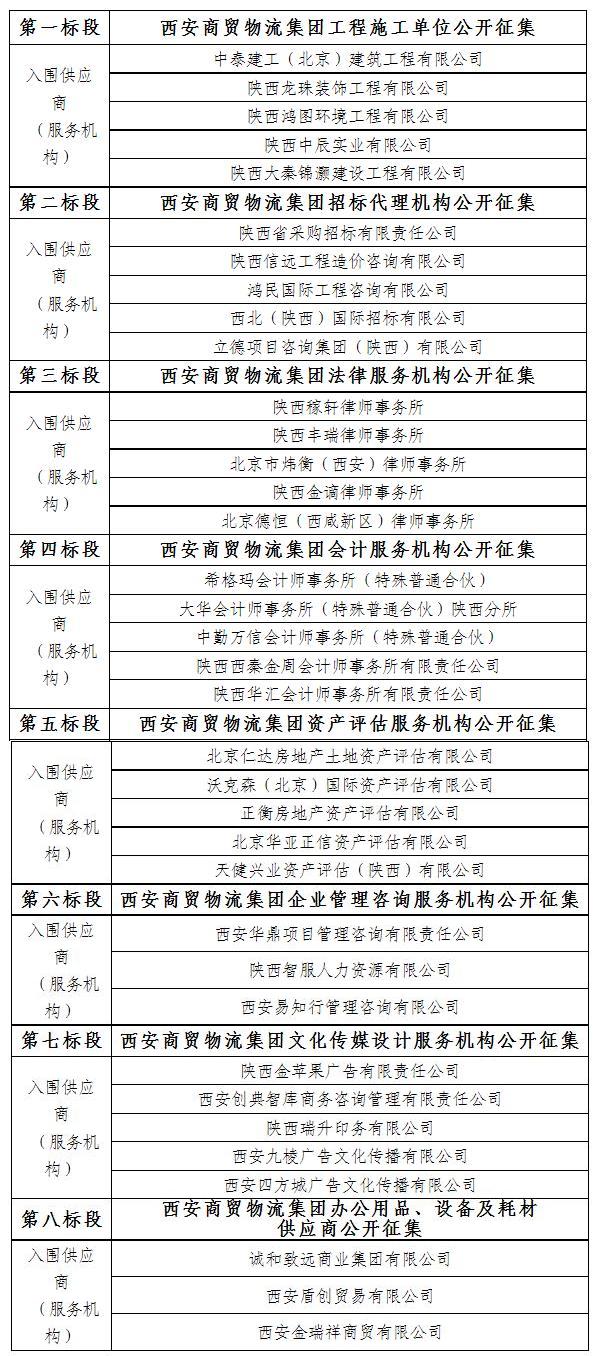 請各入圍供應(yīng)商(服務(wù)機構(gòu))于2022年11月15日至2022年11月17日持單位介紹信或法人授權(quán)委托書(授權(quán)代表)到西安商貿(mào)物流集團企劃發(fā)展部(前海金融人壽中心1號樓2201室)領(lǐng)取入圍通知書。
