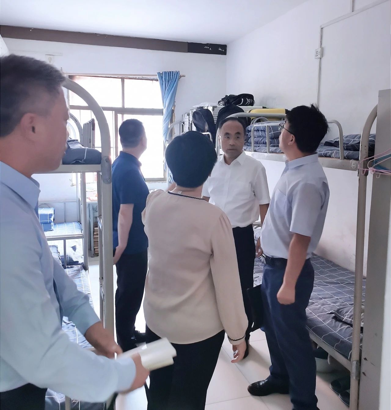 張大為檢查西安市物資技工學校學生宿舍