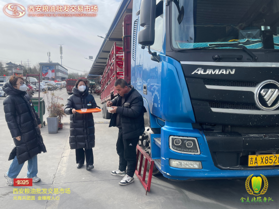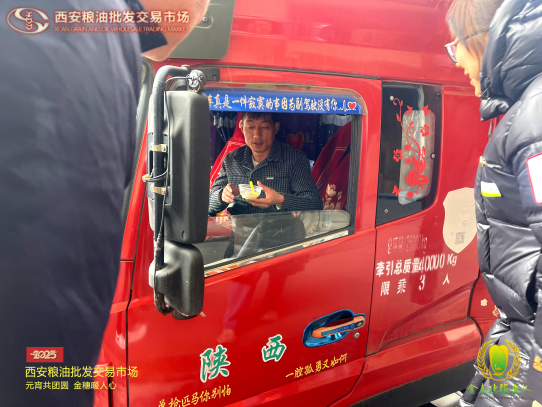 “金麥穗”服務(wù)隊(duì)還特別為外地大貨車(chē)司機(jī)送上了暖心湯圓。這些大貨車(chē)司機(jī)常年奔波在外,很難和家人一起過(guò)節(jié)。當(dāng)他們收到這份特別的節(jié)禮時(shí),眼中滿是感動(dòng)。一位司機(jī)師傅說(shuō):“雖然不能回家,但在這里感受到了家的溫暖,更感受到了千年古都西安人民的熱情,謝謝糧油市場(chǎng)對(duì)我們的關(guān)心。”