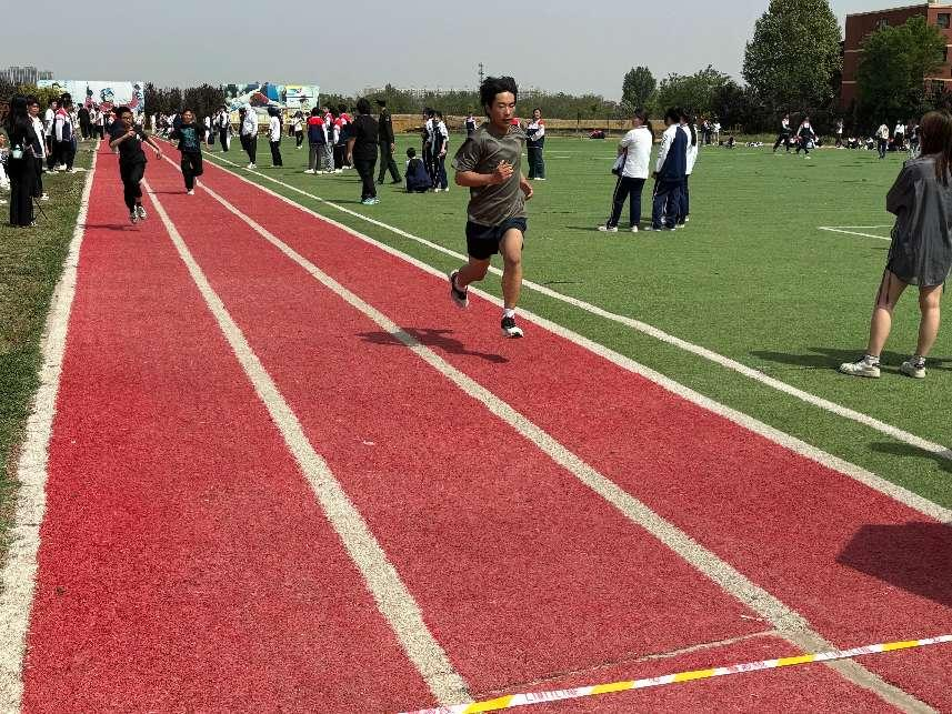 本次運(yùn)動會分別設(shè)置了100米、200米、400米、800米、4×400米接力賽、60米障礙往返跑、跳遠(yuǎn)等比賽項(xiàng)目。隨著發(fā)令槍響,運(yùn)動會各項(xiàng)比賽也緊鑼密鼓地開始了,寧靜的校園頓時沸騰起來。田徑賽場上,運(yùn)動員們?nèi)_刺,100米短跑的最好成績達(dá)到12秒58;跳遠(yuǎn)賽場上,最好成績達(dá)到 2.83米。啦啦隊(duì)加油助威,志愿者貼心服務(wù),廣播站傳遞精彩瞬間,整個校園沉浸在熱烈的氛圍中。